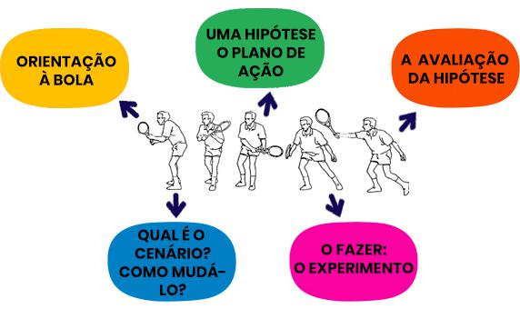 (B) Qual é o cenário? Como mudá-lo? o praticante interpreta a situação, forma um cenário em que imagina diferentes situações desde como virá a bola, até as consequências dele rebater de um jeito ou outro.